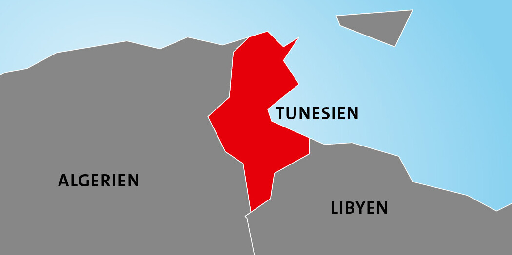 - Karte: Tunesien liegt in Nordafrika am Mittelmeer und grenzt an Algerien und Libyen. Das Land ist etwa halb so groß wie Deutschland.
