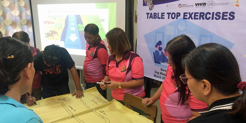 Den Abschluss des Vorsorgeprojekts bildeten dreitägige Katastrophenvorsorge-Trainings. Hier lernen Erwachsene und Kinder Merkmale verschiedener Katastrophen kennen und erarbeiteten gemeinsam Rettungspläne. In einer anschließenden Flutsimulationsübung bereiteten sie sich praktisch auf den Ernstfall vor.