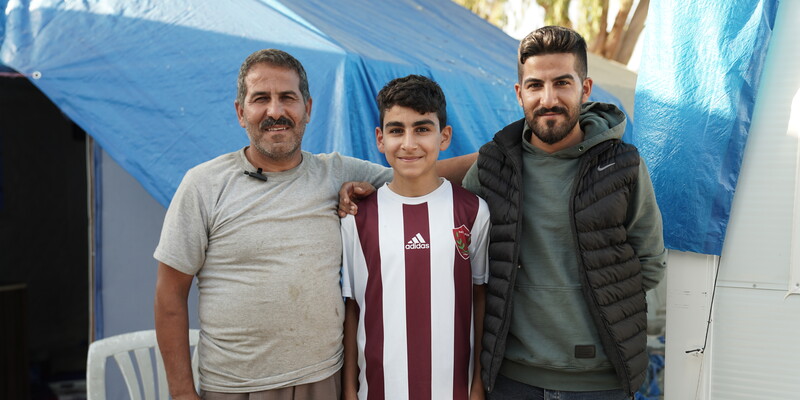 Unter den Einwohner:innen sind Khalil Dincher und seine Angehörigen. Er erinnert sich an die ersten Tage nach der Katastrophe: "Überall Regen und Schlamm. Es war schwer, ein Zelt zu bekommen. Wir schliefen in einem Ofen. Zu zweit, fast drei Wochen lang. Danach konnten wir in ein Zelt ziehen."