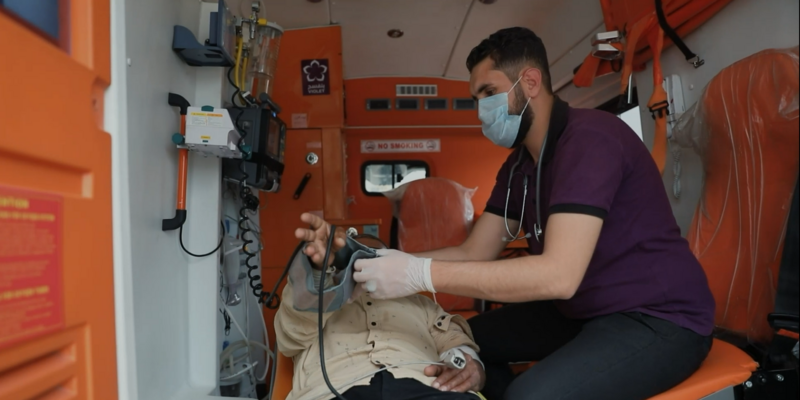 Muhammed ist seit über fünf Jahren als Sanitäter tätig. In dieser Zeit hat er gelernt, Patient:innen erste Hilfe zu leisten, sie sicher zu transportieren und wie er Menschen im Fall von Bombenangriffen schützen kann.
