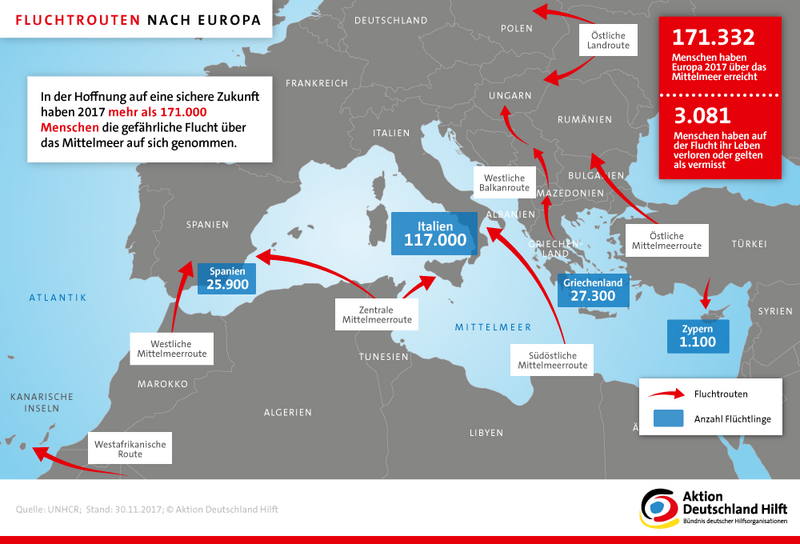 Infografik: Das sind die wichtigsten Fluchtrouten nach Europa