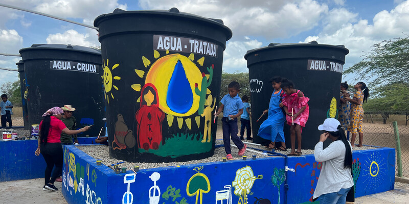 Im Zentrum stehen 40 freiwillige Helfer:innen, die selbst vor Jahren nach Kolumbien geflohen sind. Sie wurden in Workshops geschult, um in ihren Nachbarschaften über Themen wie psychologische Erste Hilfe, Krankheitsprävention und gewaltfreie Kommunikation aufzuklären.