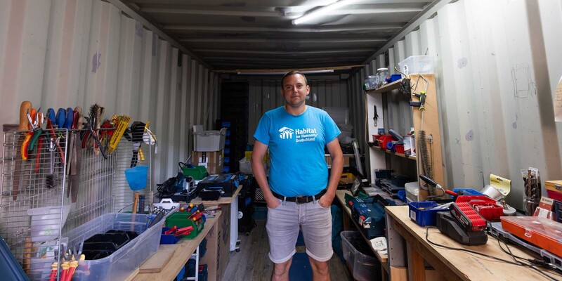 Dass es den Werkzeugverleih von Habitat for Humanity im Ahrtal bald nicht mehr geben wird, hat sich herumgesprochen. Bernd Schlesiger kommt an diesem Morgen vorbei, um zu fragen, wie lang er seine Baustellentür noch behalten könne. Auch sein Haus steht nur wenige Meter entfernt. Während der Flut stand das Wasser zehn Zentimeter unter der Decke, mittlerweile ist das Ehepaar Schlesiger zurückgekehrt. "Außer der Garage ist alles fertig", sagt er.