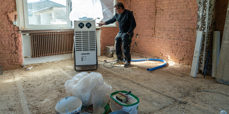 Dankbar ist er über die vielen Freiwilligen, die beim Aufräumen geholfen haben. 50 bis 60 Leute kamen am Tag, nach acht Tagen war das Gehöft besenrein. Im Haus ist der Estrich vom Boden entfernt die Holzvertäfelung zum Schreiner gebracht. In den Zimmern surren die Bautrockner vom Arbeiter-Samariter-Bund, um das Gemäuer zu trocknen. Doch die Feuchtigkeit schwindet nur langsam.