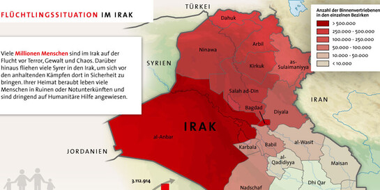 Seit mehr als einem Jahr hilft der ASB den Flüchtlingen in den Camps Berseve I und II. Nach der Winterhilfe konzentrierte sich das ASB-Engagement auf Hygienemaßnahmen und -aufklärung, die gesundheitliche Versorgung der Flüchtlinge sowie den Aufbau von Sozialstationen. Aktuell herrschen im Irak Temperaturen um die 50 Grad. So werden selbst alltägliche Erledigungen erschwert. Viele Menschen besitzen nur das, was sie bei ihrer Flucht tragen konnten. Hinzu kommt, dass die meisten Familien in den Camps über keine eigenen Einkommensmöglichkeiten verfügen und fast komplett von externer Hilfe abhängig sind. „Wir unterstützen derzeit mehr als 3.000 Familien in den Camps Berseve I und II in der Nähe von Zakho“, erzählt Edith Wallmeier, Leiterin der Auslandshilfe beim ASB-Bundesverband.