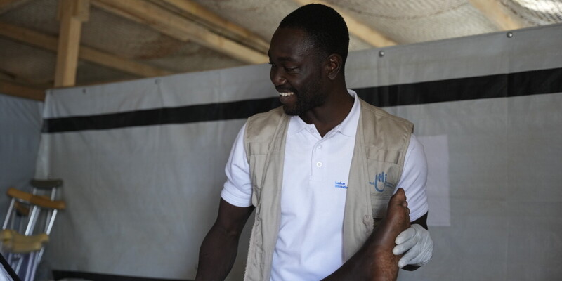 Als Physiotherapeut sorgt er dafür, dass die Menschen Mobilitätshilfen wie Gehstöcke und Rollstühle und eine schnelle Reha-Behandlung bekommen. Zu seiner Arbeit gehört auch, Menschen den Zugang zu Prothesen zu ermöglichen. Das Ziel: mehr Selbstständigkeit und ein selbstbestimmtes Leben in Würde.