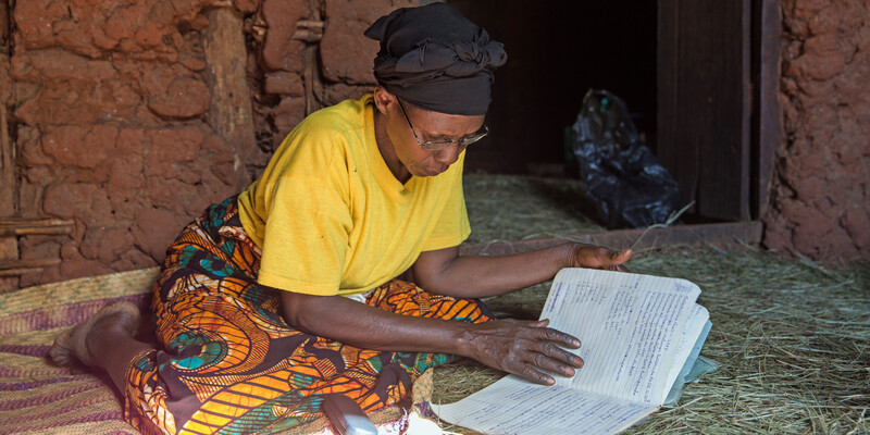Sie ist eine der wenigen Frauen in ihrem Dorf, die lesen und schreiben kann. Daher führt sie das Sparbuch einer kleinen Gruppe, die gemeinsam etwas Geld für akute Notsituationen beiseitelegen, und bringt darüber hinaus abends den anderen Frauen der Gruppe dieses Wissen bei. In Tansania ist das etwas besonders.
