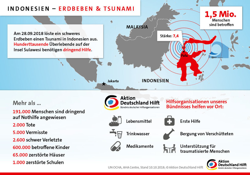 Quellen: UN OCHA, AHA Centre, Stand 04.10.2018; © Aktion Deutschland Hilft